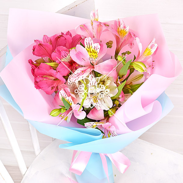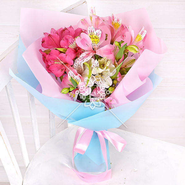 Разноцветная альстромерия покоряет своей воздушной легкостью! Букет выполнен в розово-белой гамме, выглядит восхитительно и привлекает к себе восторженное внимание.